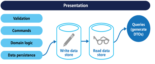 Solution – CQRS separates reads and writes into different models, using commands to update data, and queries to read data.