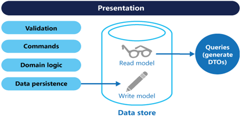 Having separate query and update models simplifies the design and implementation. For greater isolation, you can physically separate the read data from the write data. In that case, the read database can use its own data schema that is optimized for queries.